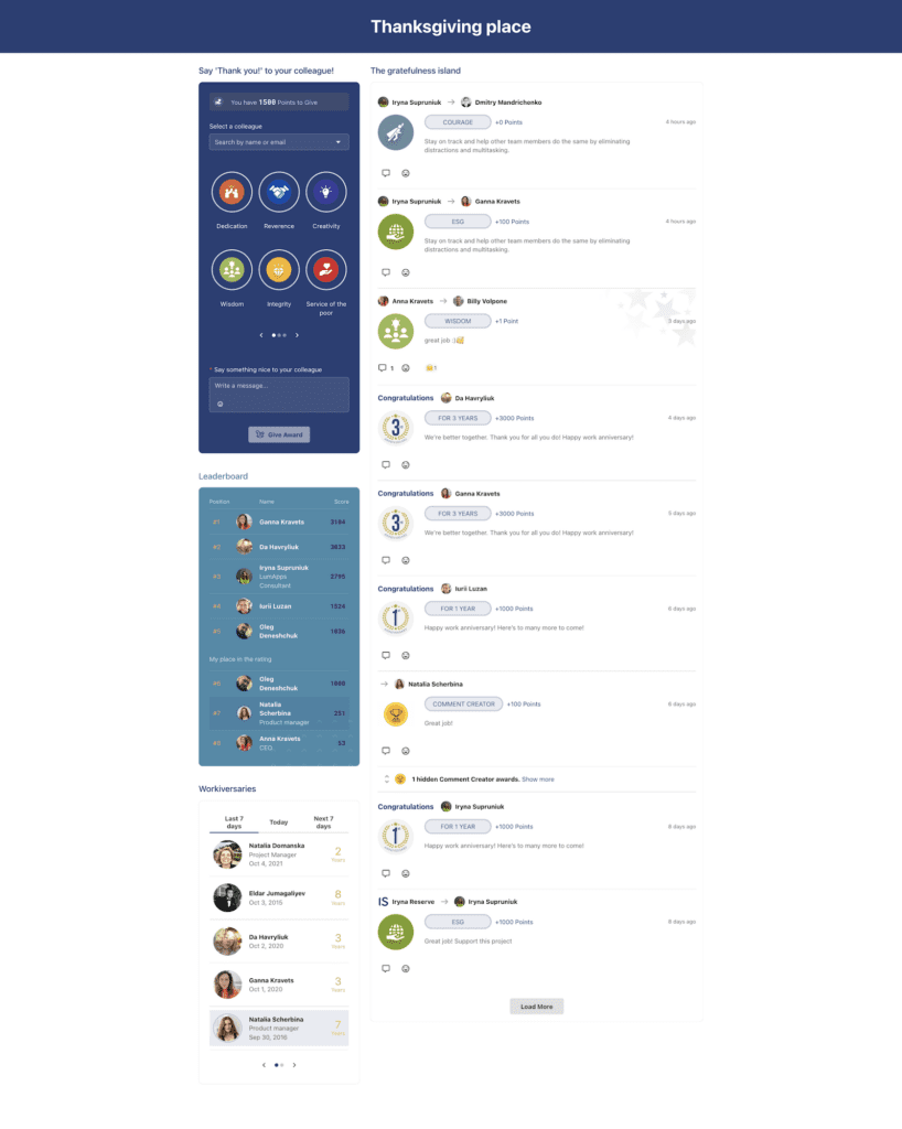 Make this day about expressing gratitude to your employees and every colleague! Set up a dedicated page to help people navigate through the Thanksgiving recognition campaign. This page can also highlight employees who made especially significant efforts this year. Let them know you are grateful for these efforts. You’ll need to set up a gamification campaign with a set of peer-to-peer badges for your employees to express appreciation to each other. Every badge can be related to work activities or just to being a good person.