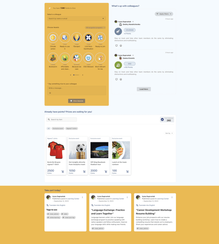You can provide such joy to your employee experience platform with a properly prepared gamification. The idea is to take something simple and known to many people so that they would not need any training or motivation to participate.