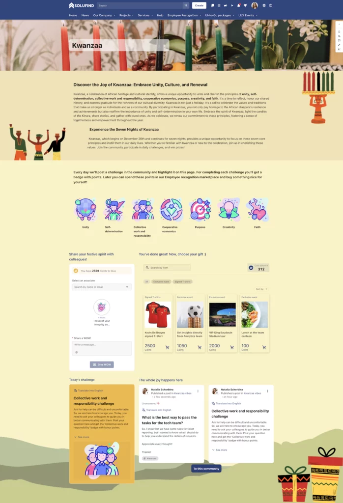 This Holiday is a perfect opportunity to celebrate African heritage and remind people of the importance of corporate culture. Let’s celebrate diversity during this festive season. You can set up this community-centered gamified challenge very easily with the right solutions on your employee experience platform.