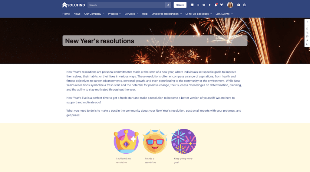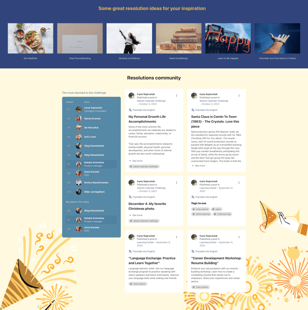 What you need to do is to set up a community where people will make their New Year’s resolutions. You can help them by posting some of the best New Year’s resolutions ideas. Set up a period to track the progress of the achievements. Here goes the game! Set up a gamification campaign to encourage people to make their resolutions, share their progress with their colleagues, and get their first achievements. Every step will be rewarded to highlight a person’s efforts in their profile. The most loyal to their resolutions will get enough points to exchange them for prizes.